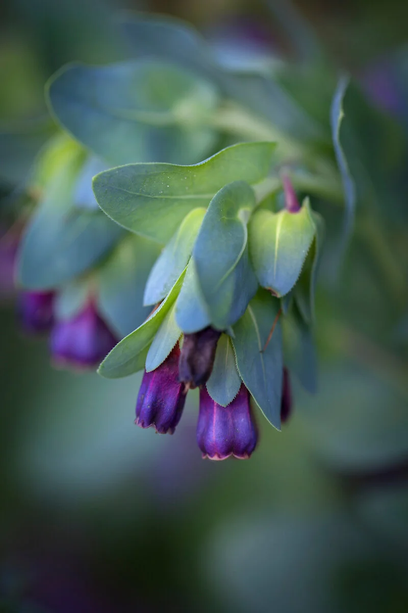 The most commonly grown form in cultivation is Cerinthe major var. purpurascens. Known in the States as the blue shrimp plant, it has wonderful, arching swathes of damson-purple flowers offset by handsome blue-green leaves. With these rich colour effects, it looks wonderful with silvery-leaved plants such as stachys or perovskia. Less widely available are the yellow form of the plant such as ‘Yellow Gem’ or ‘Yellow Candy’, which have yolk-yellow flowers that are equally sweet and attractive to bees.